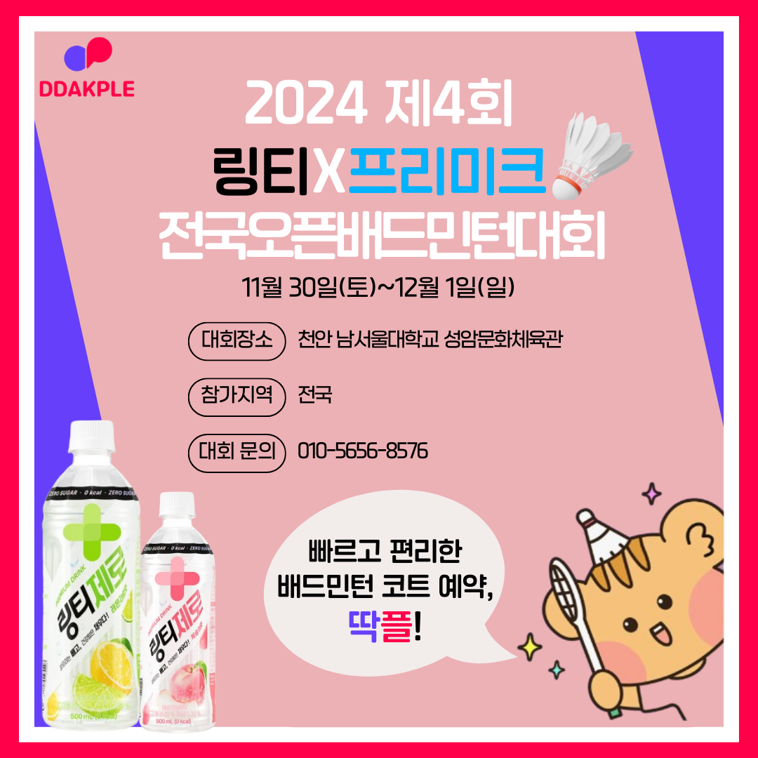 천안배드민턴대회 링티제로와 딱플이 함께하는 배드민턴전국대회!