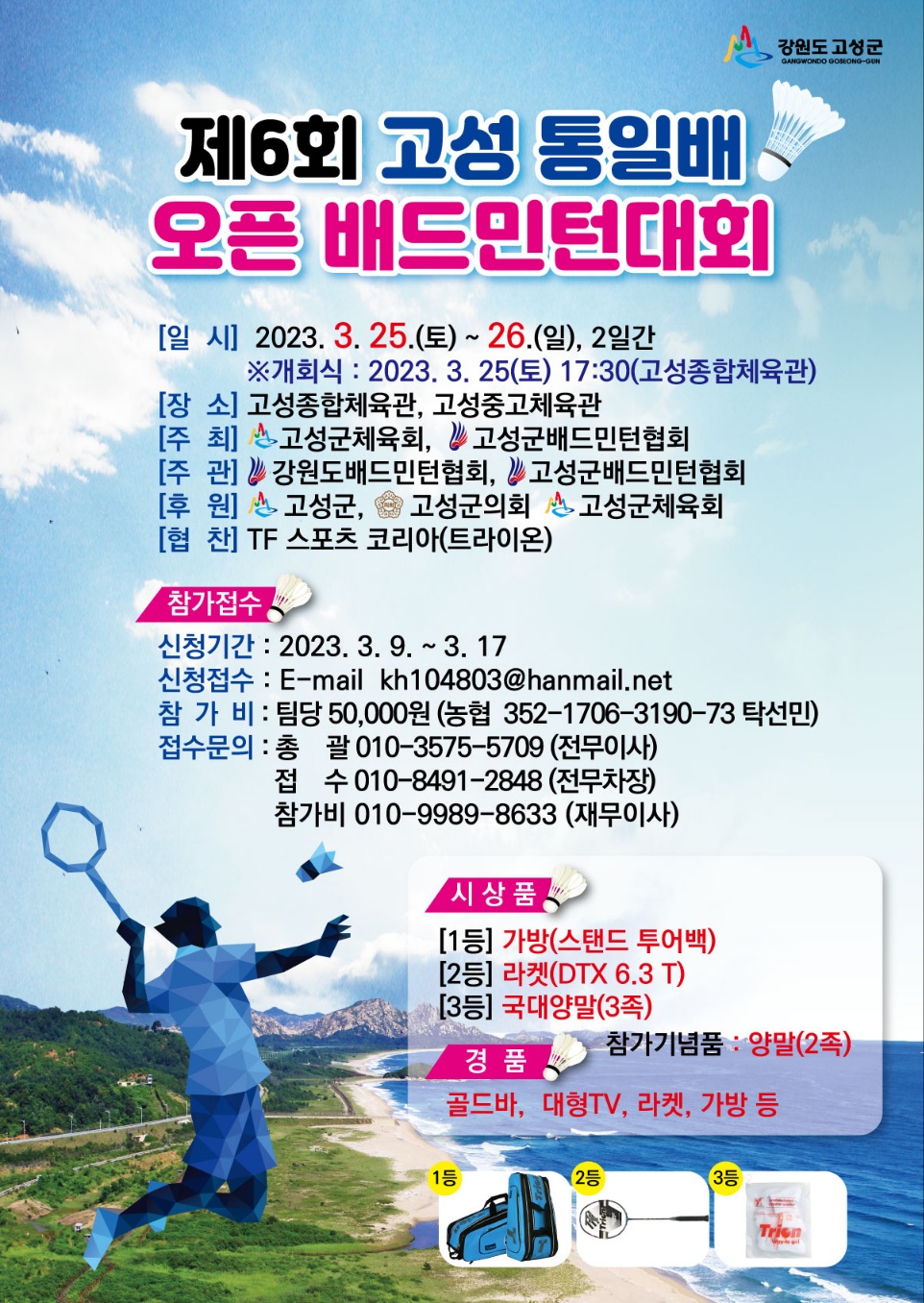 3월 25일 ~ 26일 - (강원-고성군) 제6회 고성 통일배 오픈 배드민턴대회